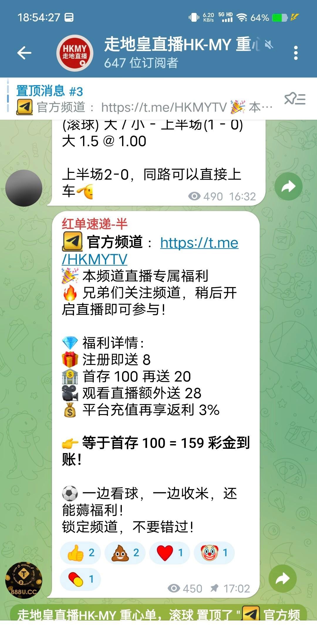 关注频道截图立即送8u,8倍水,无游戏限制,注册链接:888u.am