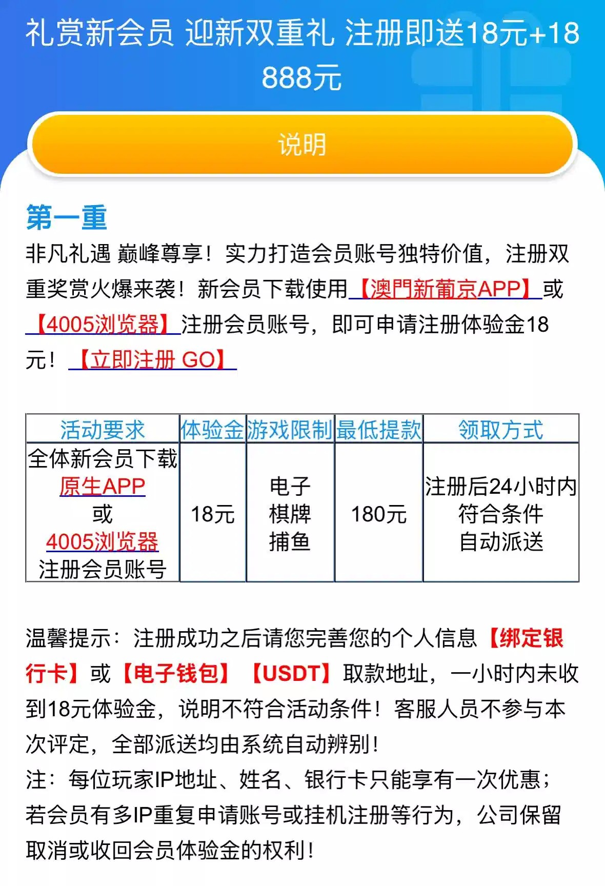 新用户注册完善资料活动里自助申请18
